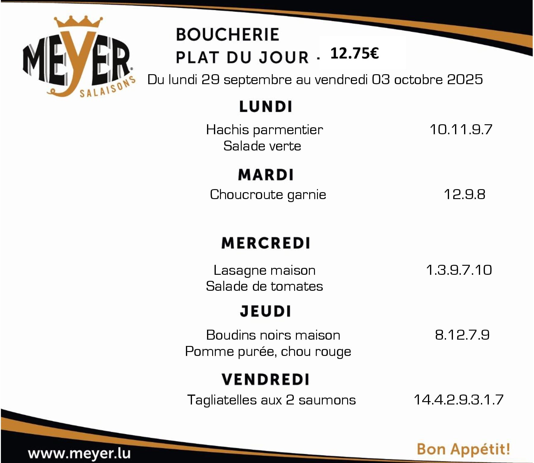 Chaque jour, profitez d’un repas fait maison, généreux et préparé avec soin dans notre boucherie artisanale par notre service traiteur.